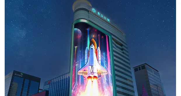 The LUUX display is noteworthy for being South Korea’s first J-shaped cylindrical curved screen. This innovative design allows for simultaneous visibility from three directions—north, west, and south—at the bustling **Sejong-daero** intersection. Upon its official launch, the display featured a variety of media art content, including “I Will Give You the Universe,” which showcases a spaceship’s journey through the cosmos, along with other captivating pieces such as a giant with a balloon-like texture and a music box.