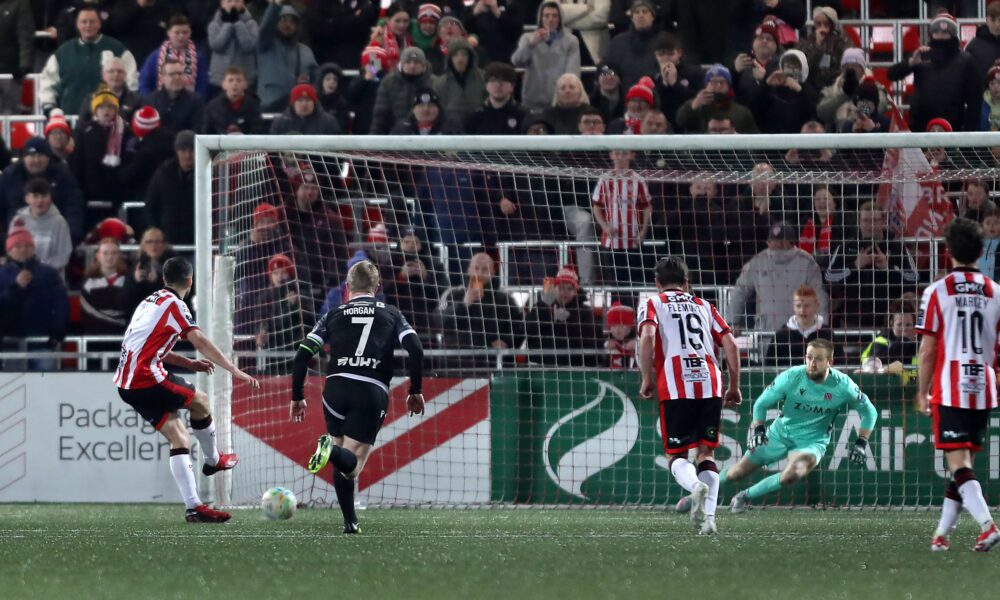 Derry City salvaged a point in a dramatic finish against Dundalk, ending the match in a 2-2 draw thanks to a last-minute penalty converted by captain...