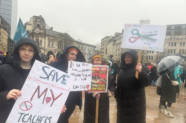 Teachers, parents, and students gathered in Victoria Square, Birmingham, on January 22, 2024, to protest against potential job cuts affecting up to 100 staff members within...